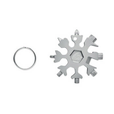 Multi-tool 17-in-1 stainless steel snowflake shaped. Optional metal ring included. This multi-tool is perfect for DIY projects and the amateur handyman. Use the ring to attach it to your toolbelt or other tools.