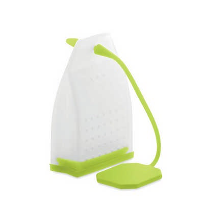 Re-usable silicone material tea bag infuser. Removable base.