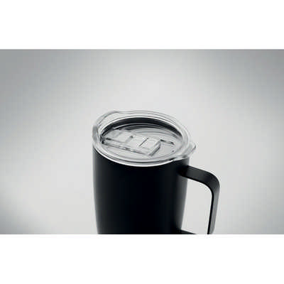 Double wall stainless steel tumbler with cork base and sliding sip hole cover. Capacity: 300ml. Take this tumbler with you on the road to drink your favourite coffee, tea or hot chocolate wherever you are. Thanks to the sliding cover it can be closed so it will not spill. The cork base gives it a unique natural touch.