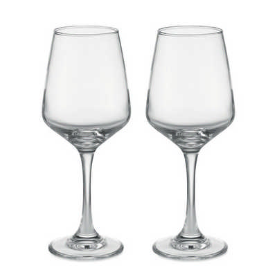 Set of 2 wine glasses (21,8 cm hight). Capacity: 400 ml. A good wine deserves to be drank from proper glassware. These two wine glasses are a great gift for the wine lover.