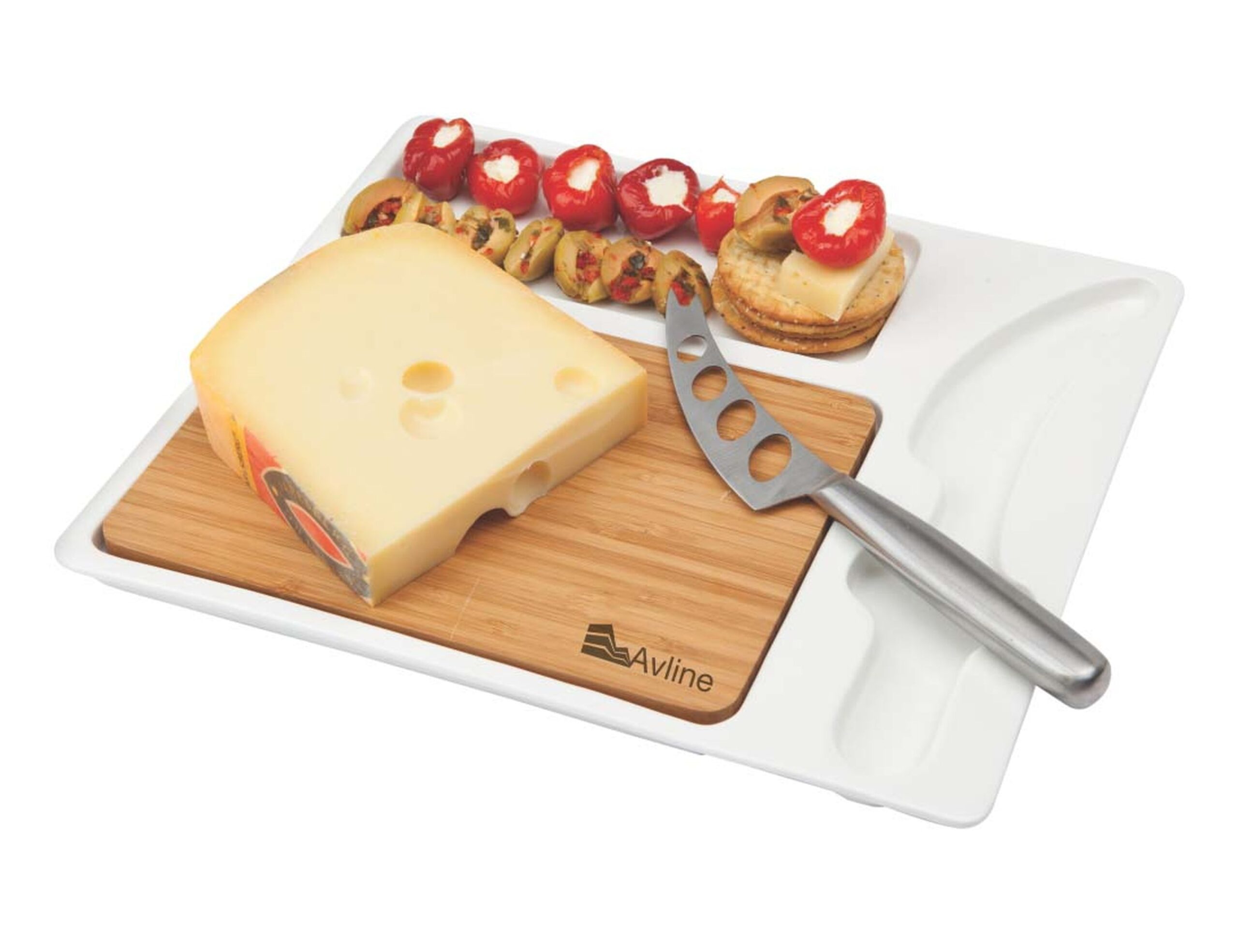Combining ‘eco-friendly’ bamboo with stylish ceramic, Snack-Rack will be used around the office and at home. Large enough to fit cheese, crackers and all those tasty snacks, the perfect item for your logo. Supplied with a stainless steel knife. Because of the unique nature of bamboo, the product and engraving colour may vary from item to item. As this product is hand crafted, each Cheese Board may differ slightly in shape and size.