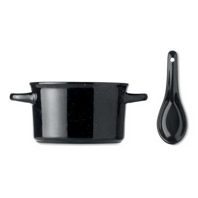 Ceramic vintage style soup bowl with spoon. Due to the spotted pattern, spots will be visible in the printed logo. Capacity: 550 ml. A simple bowl with vintage design. Serve fresh, homemade soup in this bowl for a healthy meal.